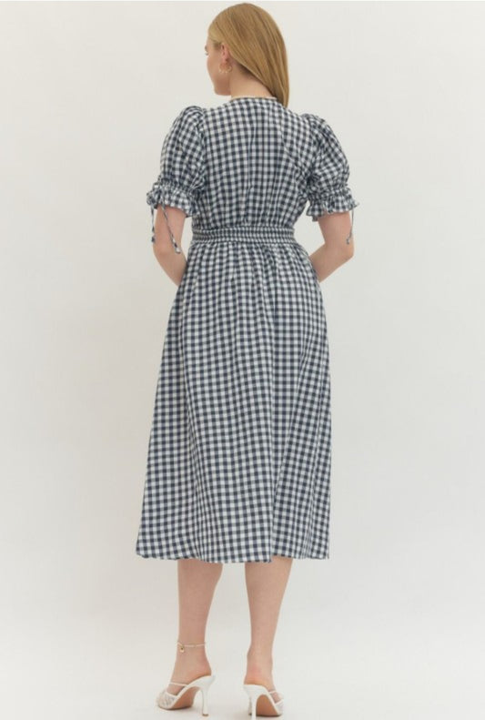 Navy Ginham Midi Dress