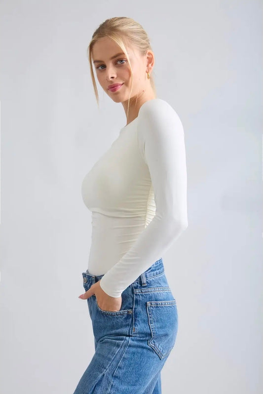 Long sleeves basic top-White